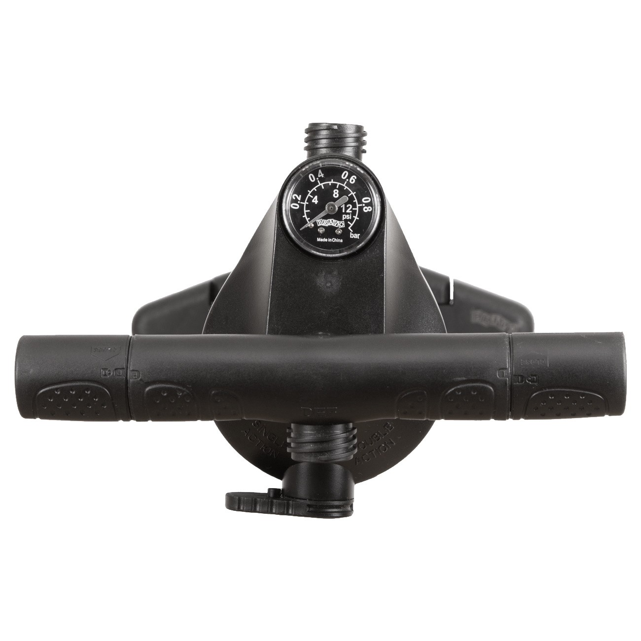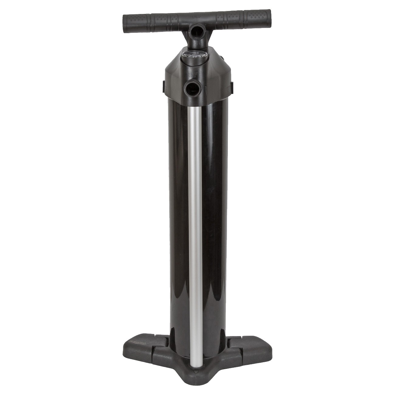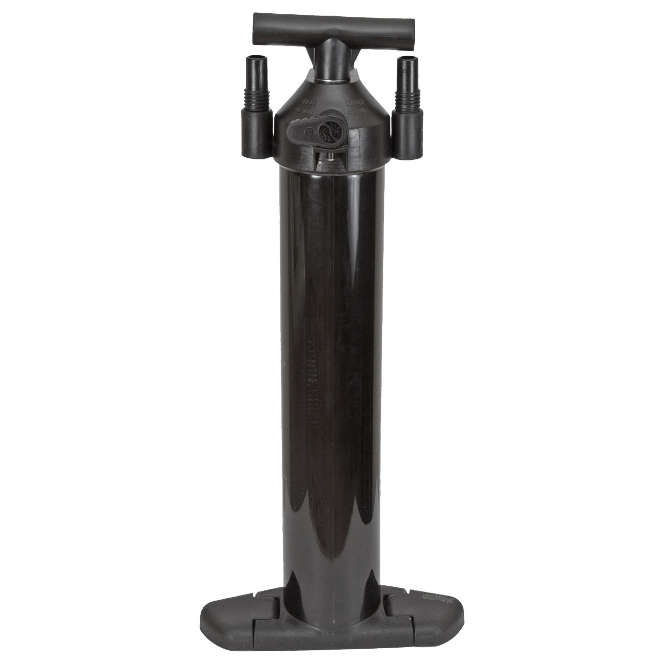 Ручной насос двойного действия, предназначенный для надувных изделий высокого давления, надувных лодок. При хранении и транспортировке можно уменьшить габаритные размеры складыванием подножки и рукояток.
