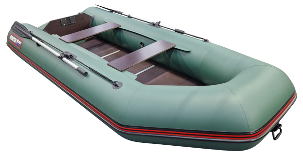 Лодка имеет стационарный транец под мотор, мощность которого достигает 6 л.с. Ее неподражаемые мореходные качества, легкий ход под веслами и мотором, а также небольшая масса в сочетании с компактной упаковкой, привлекают массу покупателей. Для компании из двух или трех человек такой водный транспорт подойдет как нельзя лучше. Крепкий и устойчивый пол из 9-миллиметровой водостойкой фанеры удачно дополняет общую идеальную картину.