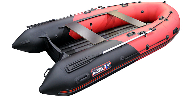 Надувная лодка Хантер 380 ПРО со стационарным вклеенным умеренно-килевым дном низкого давления (НДНД) рассчитана на использование с мотором до 25 л.с. с максимальной загрузкой до 750 кг. Предназначена для рыбалки, охоты и активного отдыха на воде небольшой компанией. Выпускается в двух расцветах - комбинированном красно/черном цвете и комбинированном черно/камуфлированном цвете.