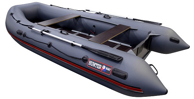 Надувная лодка Хантер 390 объединила в себе все наработки, что есть у моделей надувных лодок со сборным пайольным дном, выпускаемых нашим производством.