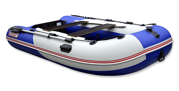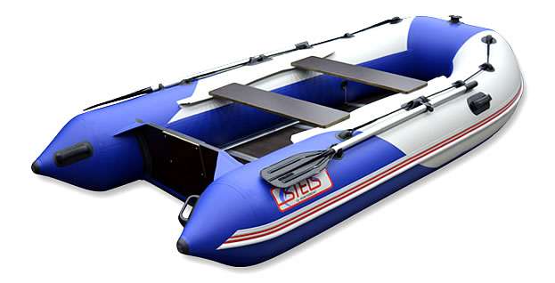 Надувная лодка СТЕЛС 315 изготовлена и ПВХ ткани плотностью 850 гр/м.кв., и представлена в современном дизайне и комбинированном сине/белом цвете.