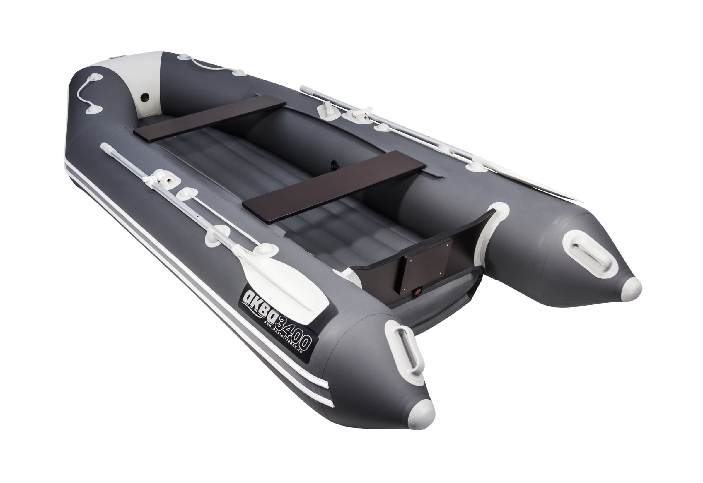 Лодка оснащена ручками для переноски на носу и на корме, ручкой шкипера, леерами безопасности.