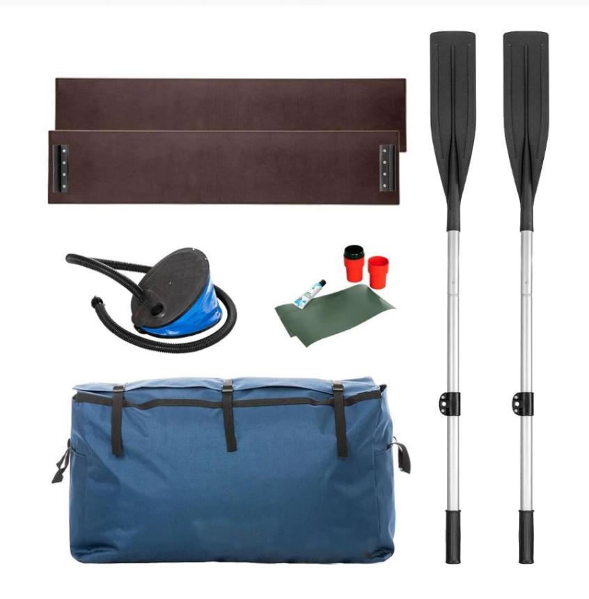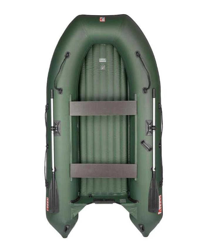 - Складные алюминиевые весла с гребками из прочного пластика с дополнительным фиксатором, позволяющим установить весло на уключину. На бортах лодки установлены держатели весла, которые надежно фиксируют весла во время движения;