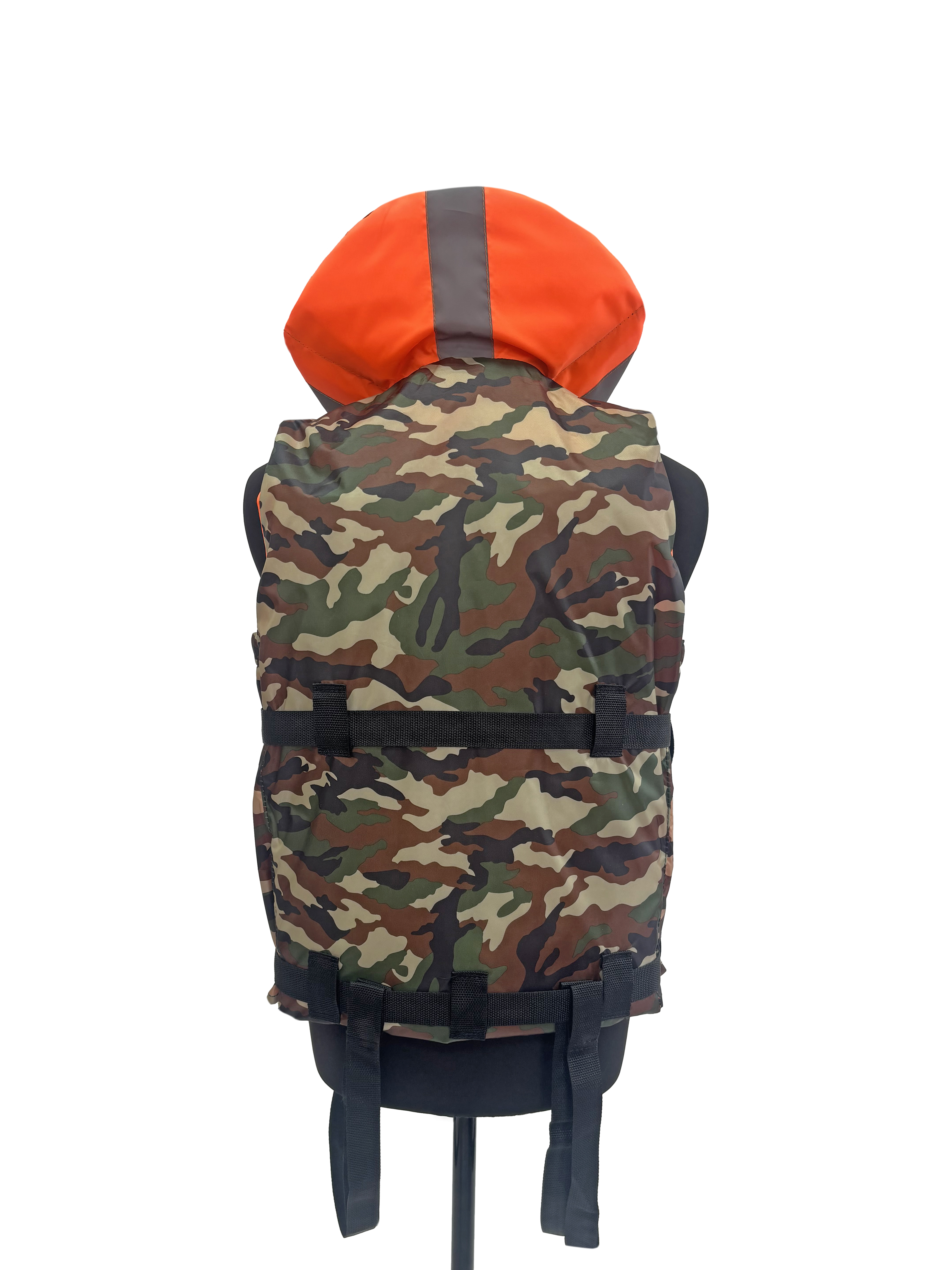 На камуфлированной стороне два накладных кармана.Данный спасательный жилет изготовлен в соответствии с требованиями ГОСТ 22336-70.