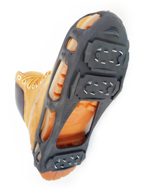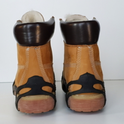 Стальные пластины залиты в резину, в подошву насадок. Так что 48 шипов расположены по всей подошве и спереди и под пяткой. На обувь ледоходы Ямал 24х24 крепятся удобно и надежно, охватывая её со всех сторон. Да, эту модель ледоступов вряд ли целесообразно использовать на городских, лишь местами обледенелых тротуарах. Однако она превосходно подходит для зимнего туризма, охоты, рыбалки и, конечно, в качестве средства индивидуальной защиты при работе зимой на открытых объектах.
