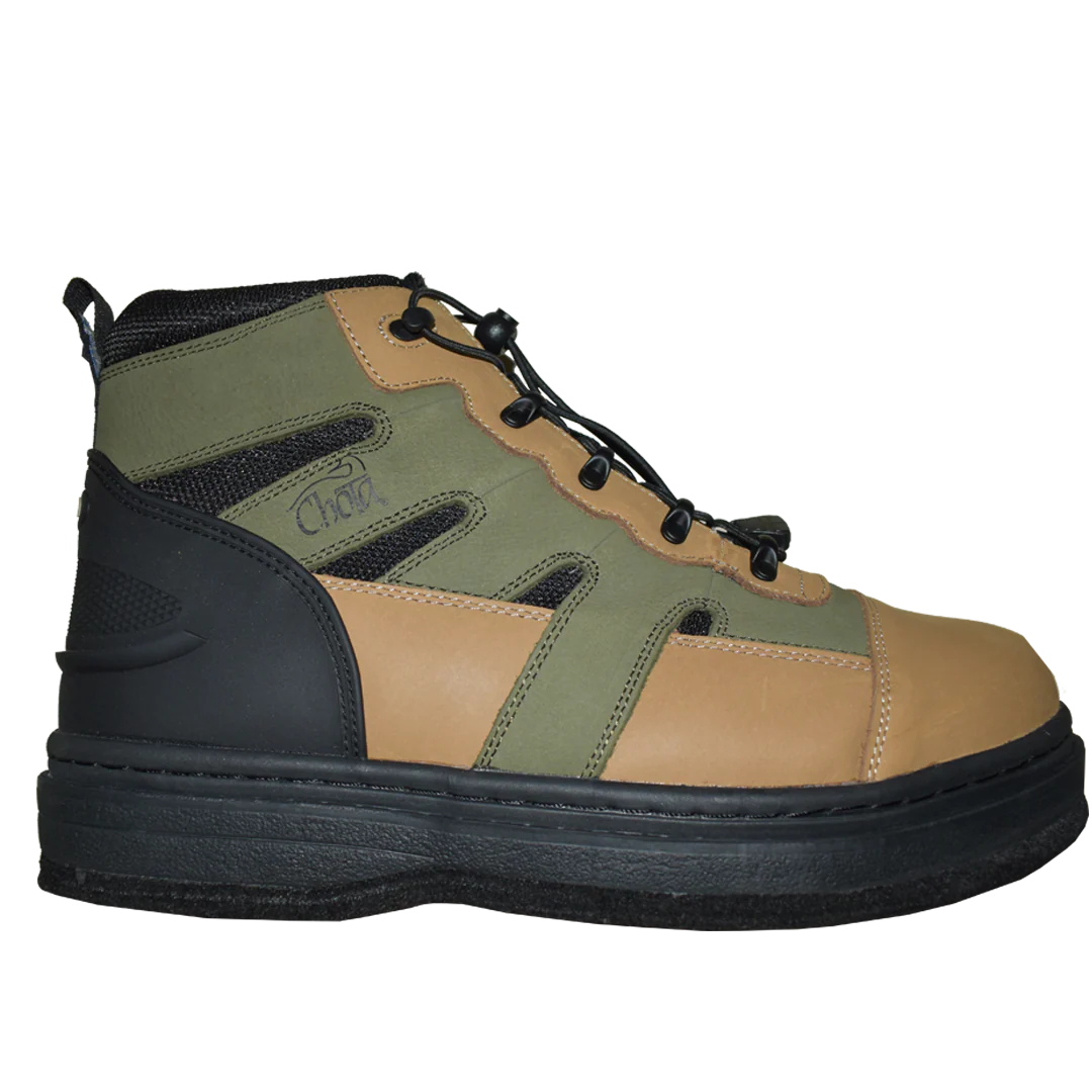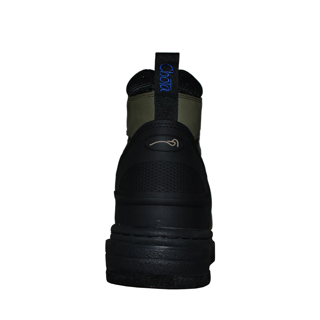 Формованная стойка пятки усиливает поддержку и имеет характерную пластину Kick Off. Эти легкие, но прочные болотные ботинки оснащены резиновыми основаниями для шипов уникальной конструкции, которые позволяют добавлять или снимать стальные или твердосплавные шипы Chota® в зависимости от условий движения.