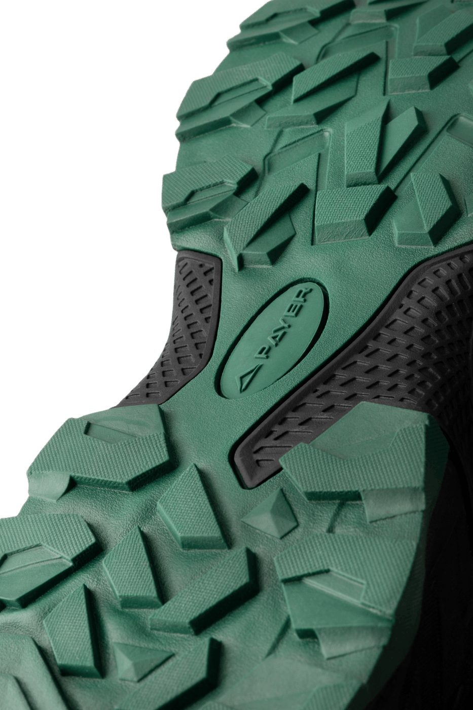 Шнурки водоталкивающие, содержат мультифиламентную нить, не растягиваются, что гарантирует долговечность. Комбинированная подошва с эффектом антискольжения и гашения вибрации обеспечивает уверенное сцепление с различными поверхностями, а укрепленная пяточная часть и носок защищают от ударов.