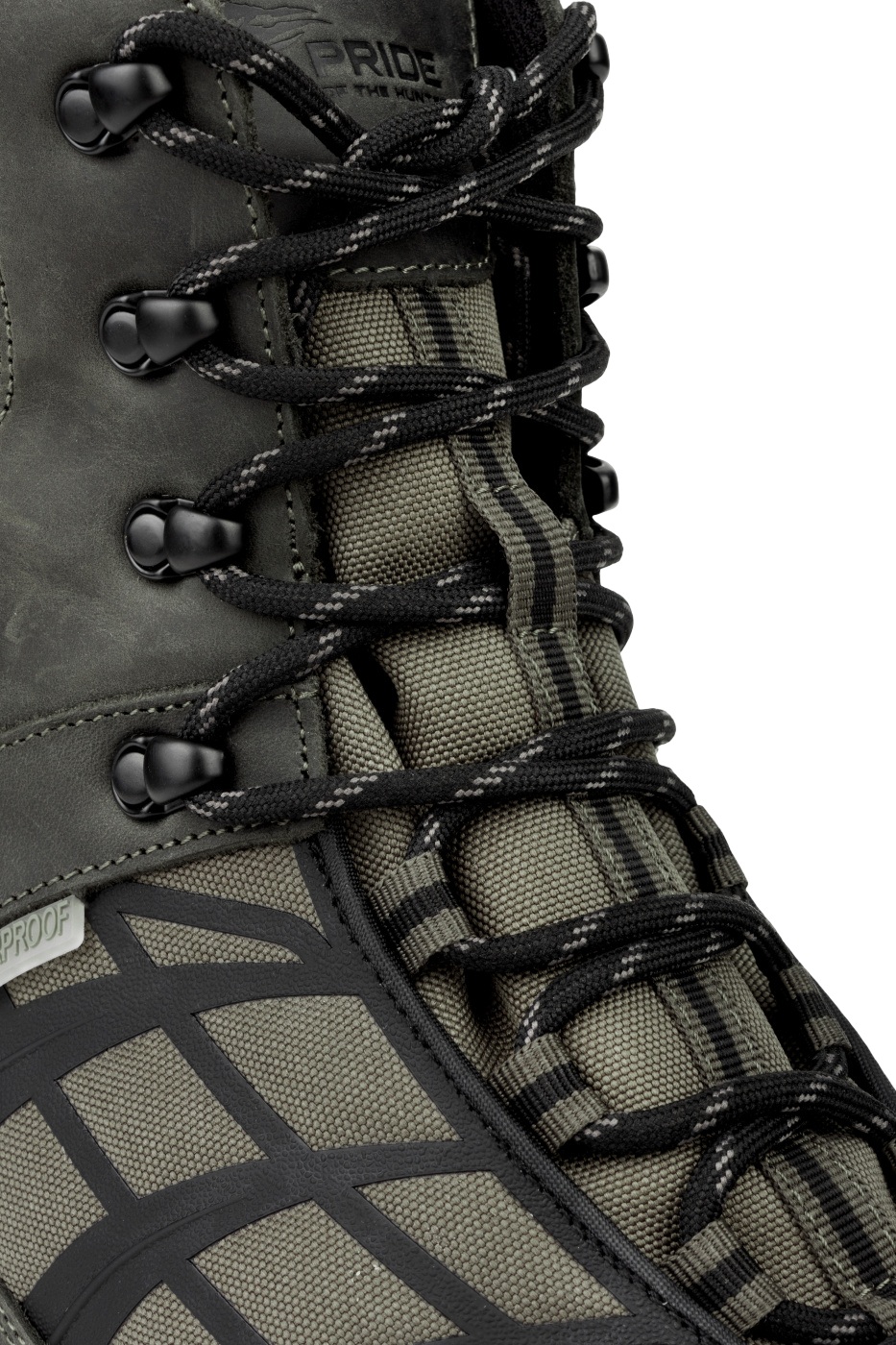 Охотничьи ботинки Pride Spider обеспечивают водостойкость до 4 часов. Верх выполнен из комбинированного состава, что гарантирует надежность и эргономичность. Удобная система шнуровки с крючками-зацепами в верхней части обеспечивает надежную фиксацию. Шнурки не растягиваются, водоталкивающие и выполнены из мультифиламента.