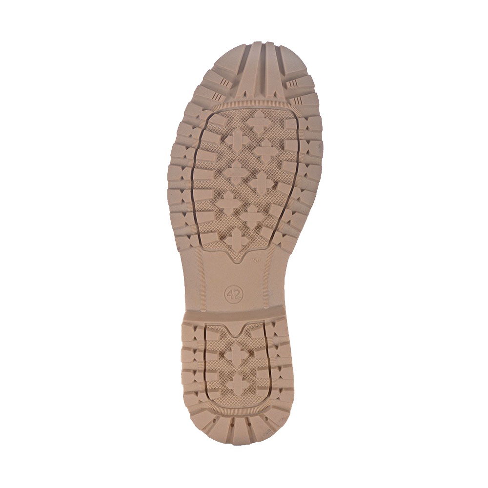 Подошва ТЭПТЭП - сочетают в себе эластичные свойства каучуков (способность к высокоэластическим деформациям и высокая морозостойкость) и термопластические свойства термопластов (высокая текучесть в расплавленном состоянии и способность перерабатываться литьевым способом).Подробнее - износостойкая, с высокими показателями грунтозацепляемости. Для повышения прочности обуви и защиты ног от случайных ударов в носовой и пяточной части вклеены усиливающие элементы.