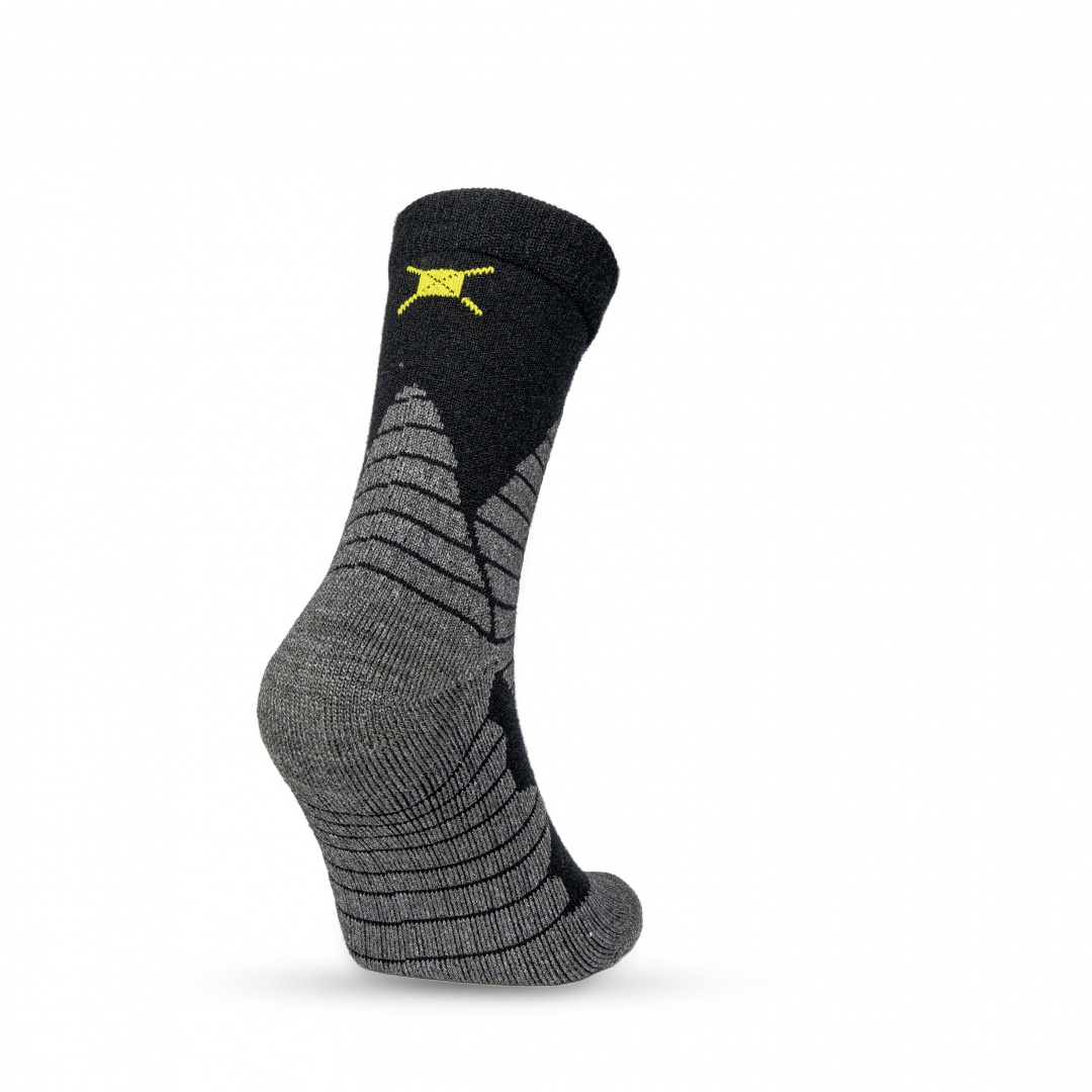 Высокие треккинговые носки для использования в осенне-зимний период. Сочетание теплой и износостойкой мериносовойMerino wool - представляет собой тонко извитую и мягкую шерсть со скобами (длины волокон), которые обычно составляют 65-100 мм (2,5-4 дюйма) и диаметром менее 24 микрон.Подробнее шерсти и материала ThermoliteThermolite