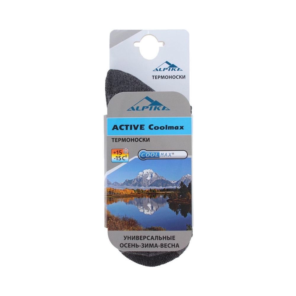 Термоноски "Alpika" Active Coolmax выполнены из специального волокна с четырьмя воздушными капиллярными каналами, благодаря чему быстро отводят воду с поверхности кожи на внешнюю сторону, регулируя таким образом температуру ног. Эластичный бандаж стопы и голеностопа надежно фиксирует носок на ноге и обеспечивает максимальный комфорт и удобство в течение всего времени эксплуатации.