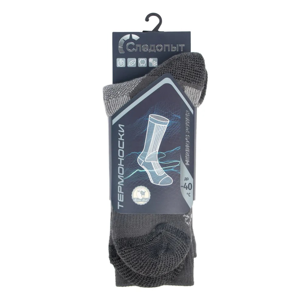 Термоноски «Следопыт» Merino's Power — ультраплотная и мягкая модель, созданная из высококачественной шерсти австралийских мериносов. Материал эффективно удерживает тепло даже при экстремально низких температурах, обеспечивая комфорт до –40 °C.