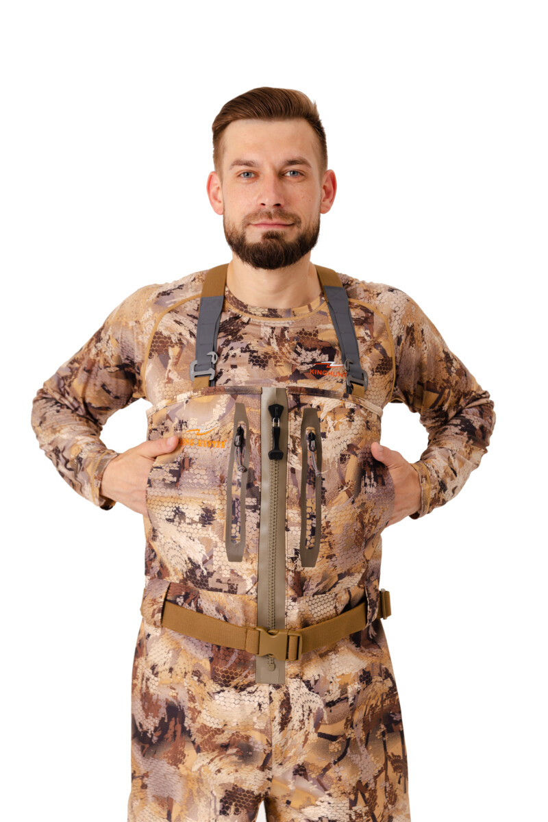 King Hunter Water Zip Camo Duck — полукомбинезон с сапогами для охоты на водоплавающую дичь, рыбалки и поездок на квадроцикле.