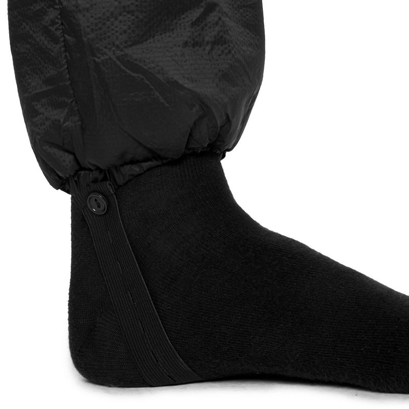 Также эти брюки имеют резинки на поясе, которые помогают комфортно закрепить их на талии, обеспечивая свободу движения без ощущения сдавленности. Дополнительный плюс — наличие ленточек под пятки, которые позволяют надежно зафиксировать брюки на ногах, предотвращая задирание штанин при ходьбе или любой другой активности.