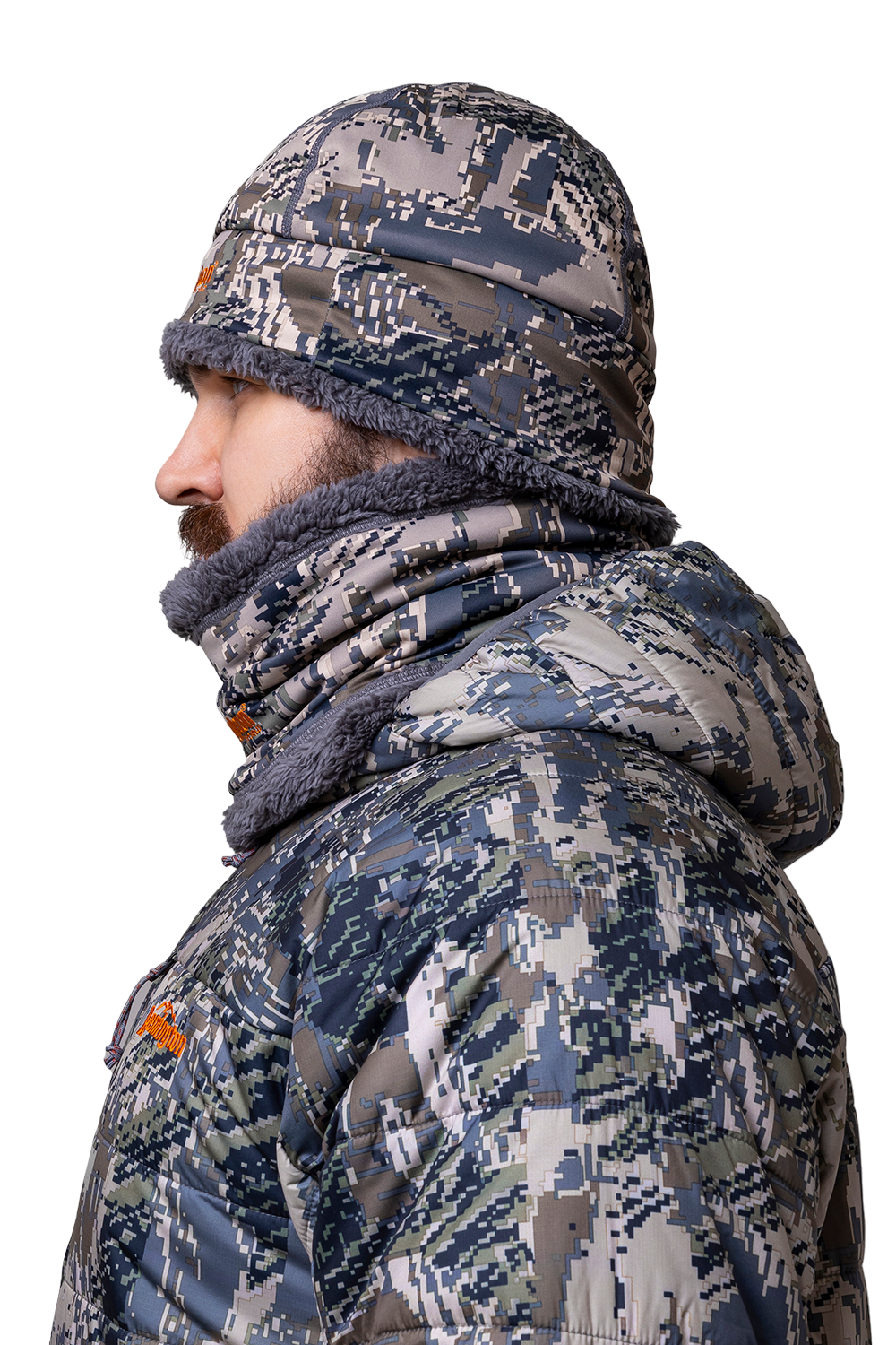 Фасон модели выполнен таким образом, что шапка не съезжает на глаза, хорошо фиксируется на голове. Снуд не прилегает слишком плотно, его высоту вы можете корректировать самостоятельно. Материал верха защищает от влаги, осадков и ветра, он прочный и износостойкий. Внутренняя часть комплекта имеет подкладку из флисаFleece - система утепления легким и тонким слоем из дышащей ткани способна поддерживать комфортную температуру тела.Подробнее двойной толщины. Такой материал обладает «дышащими» свойствами, надежно сохраняет тепло (согревает даже при намокании), имеет паропроницаемость, благодаря которой внутри будет сухо и при перегреве. Кроме того, это легкий и эластичный материал.