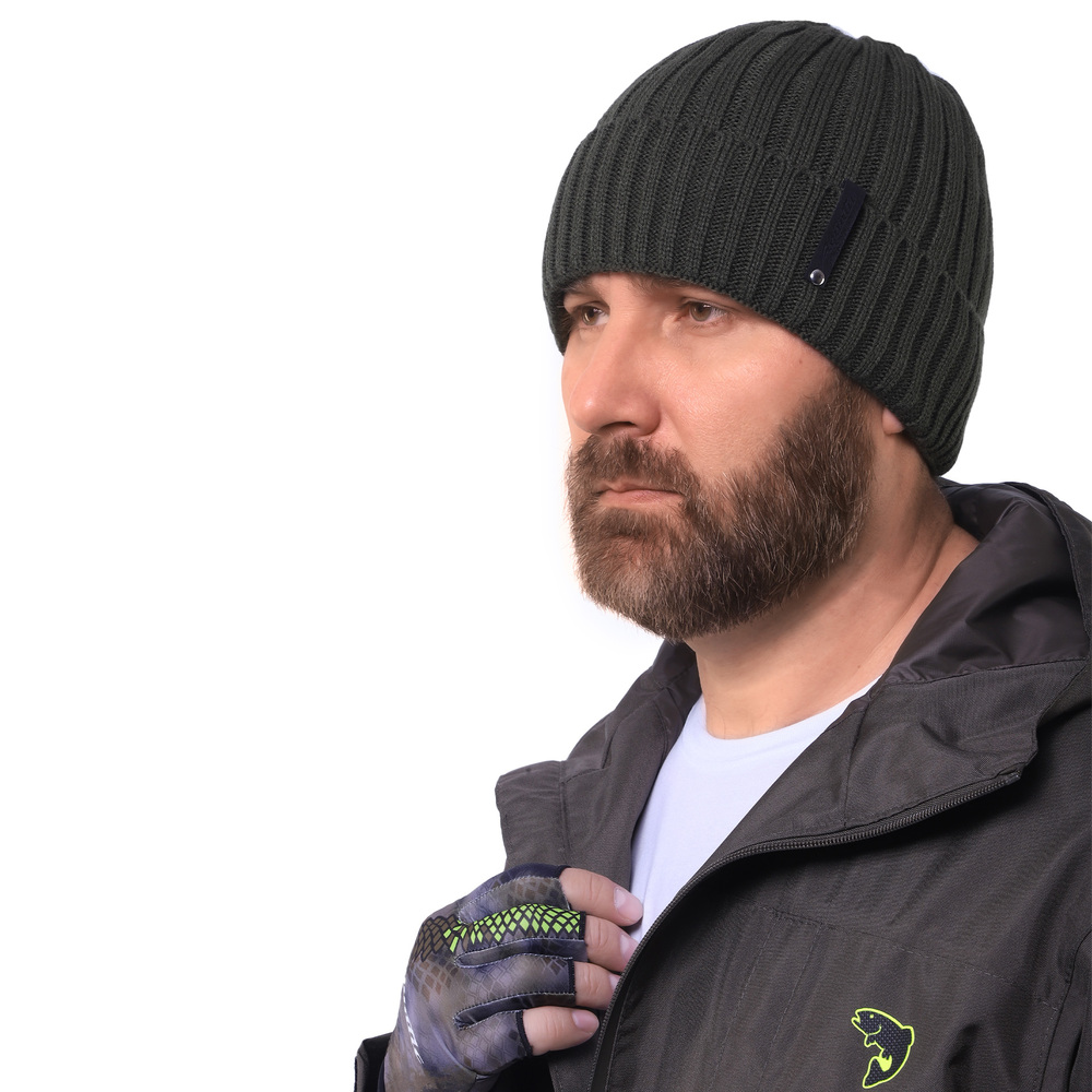 Универсальная шапка из мягкой пряжи с теплой флисовой подкладкой. Идеальное решение для рыбалки, охоты и активного отдыха на природе.