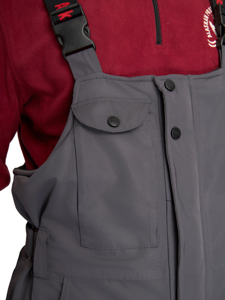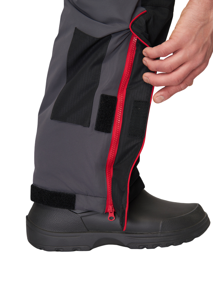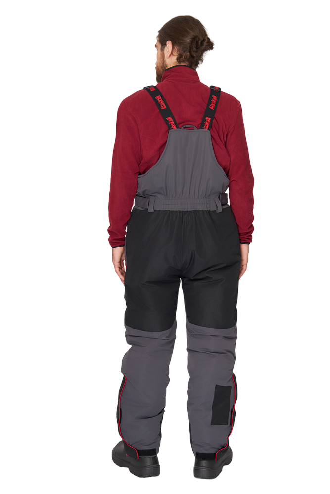 Дизайн полукомбинезона также претерпел изменения. Теперь у него имеется два кармана для рук на флисовойFleece - система утепления легким и тонким слоем из дышащей ткани способна поддерживать комфортную температуру тела.Подробнее подкладке, два больших накладных кармана, а также дополнительные усиления на эргономичных деталях колен и сзади. Нижняя часть штанин полукомбинезона имеет регулировку на застежке VelcroVelcro - текстильная застёжка, в России известная как "липучка". Представляет собой пару текстильных лент, на одной из которых размещены микрокрючки, на другой — микропетли. При соприкосновении двух лент микрокрючки и микропетли зацепляются, и одна лента как бы прилипает к другой.