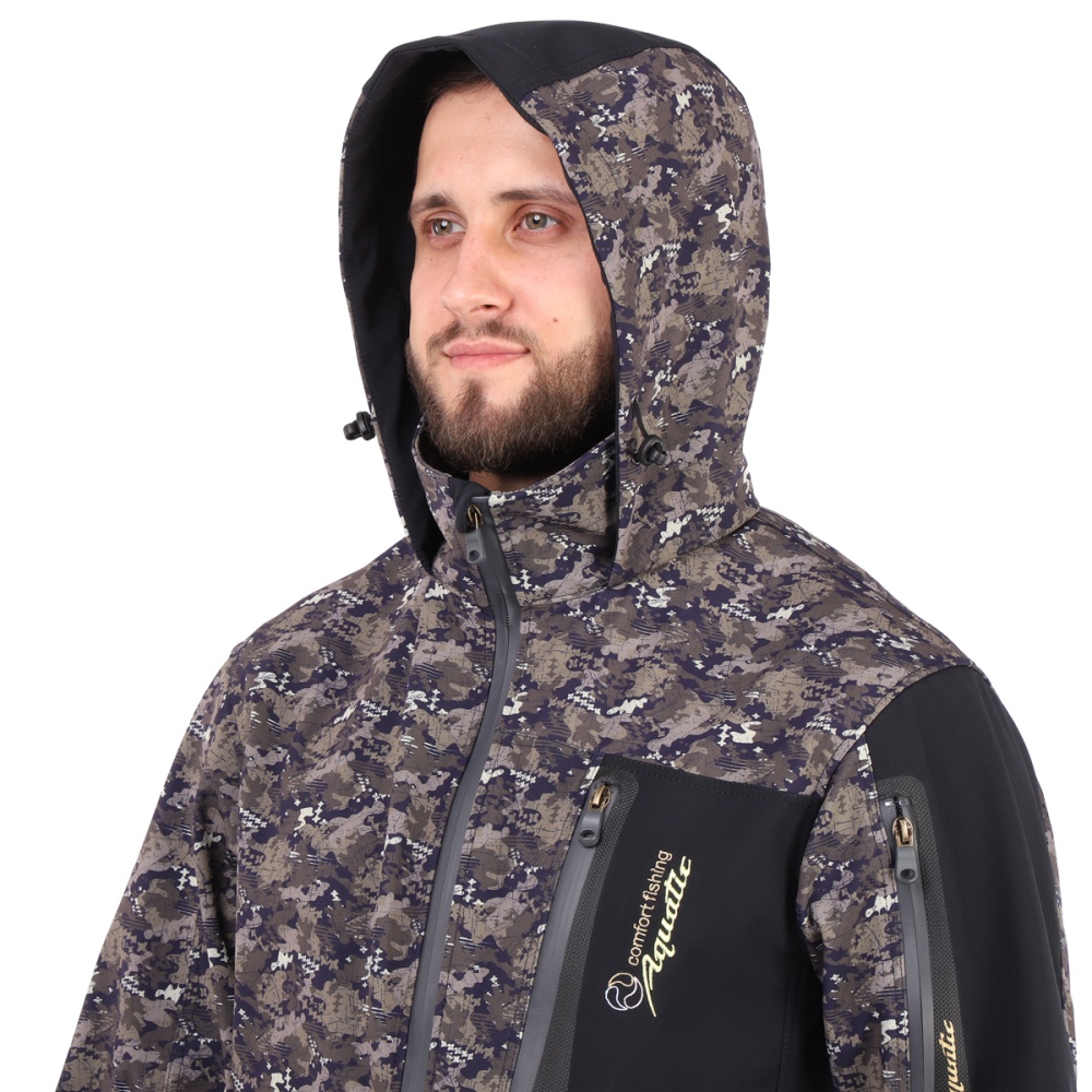 Демисезонный костюм с капюшоном AQUATIC К-25 - идеальный выбор для активного отдыха на природе, рыбалки или похода. Изготовлен из инновационного материала Soft Shell с мембраной 10 000/10 000.
