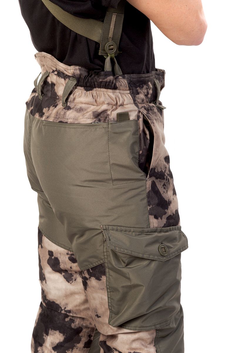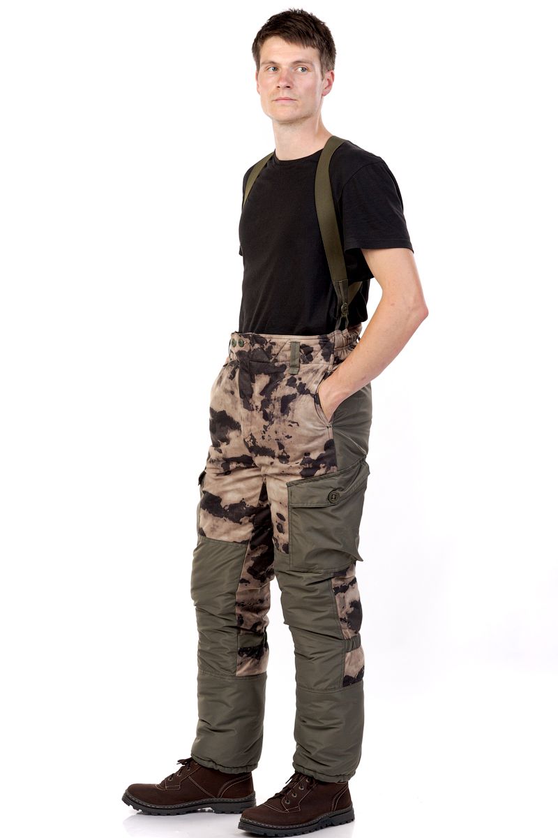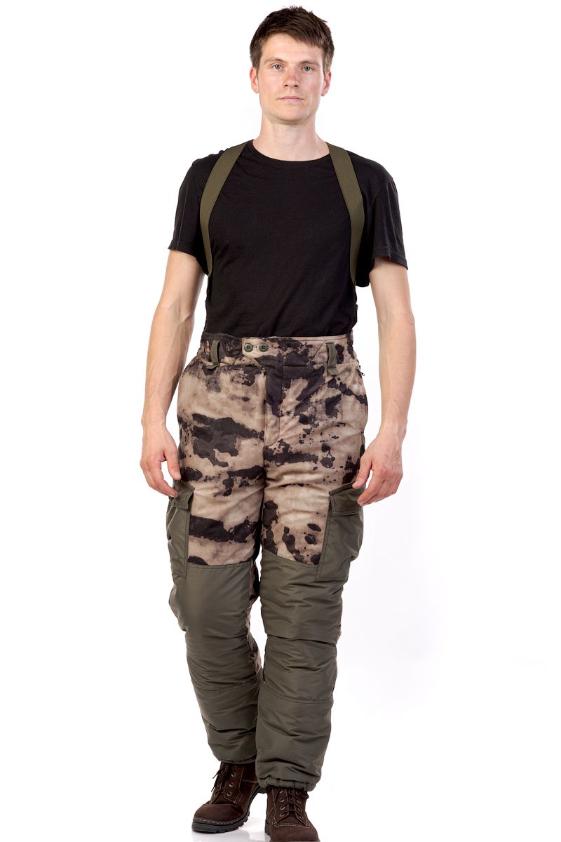 Анатомический крой для полной свободы движений. Куртка на 2-х замковой молнии с ветрозащитной планкой на кнопках и "липучке". Шесть карманов: 2 нагрудных на молнии, 2 нижних с клапаном и 2 накладных на рукавах. Воротник-стойка на флисе. Съёмный капюшон на молнии с козырьком. По линии талии эластичные вставки и кулиса. Низ рукавов на манжетах с эластичной тесьмой, добавлены усиленные налокотники. Брюки на молнии со съёмными бретелями из эластичной тесьмы, усиленные наколенники, манжеты для защиты от попадания снега.