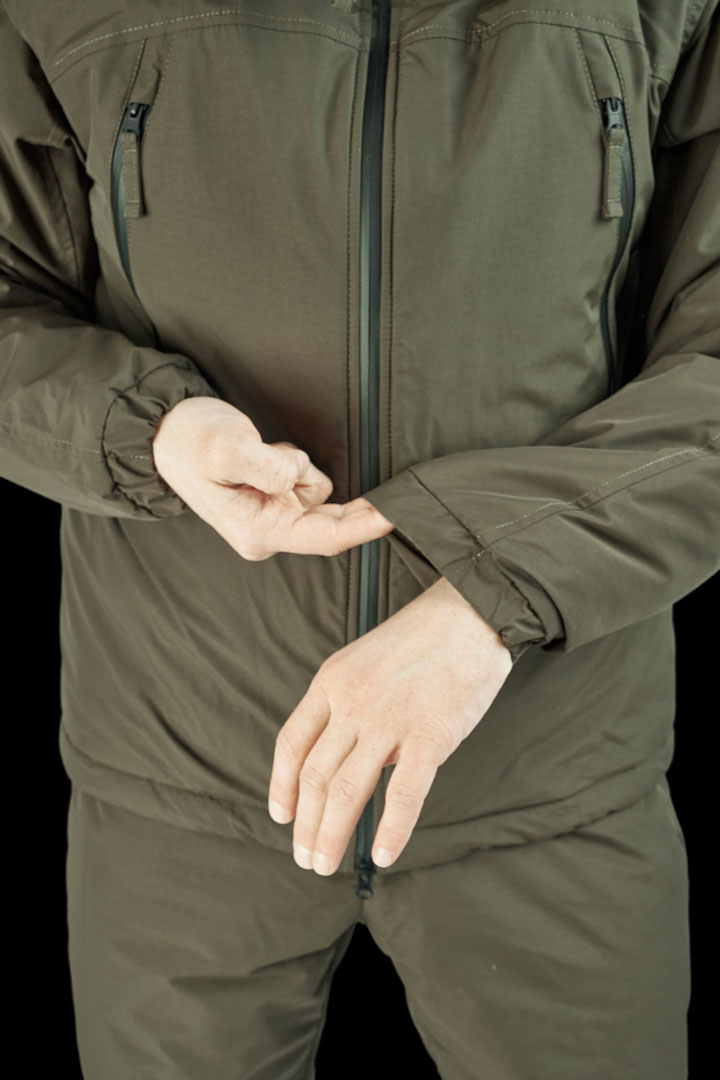 Капюшон с подкладкой регулируется в двух направлениях, а манжеты на липучках и вентиляционные отверстия обеспечивают комфортную посадку и вентиляцию внутри костюма.