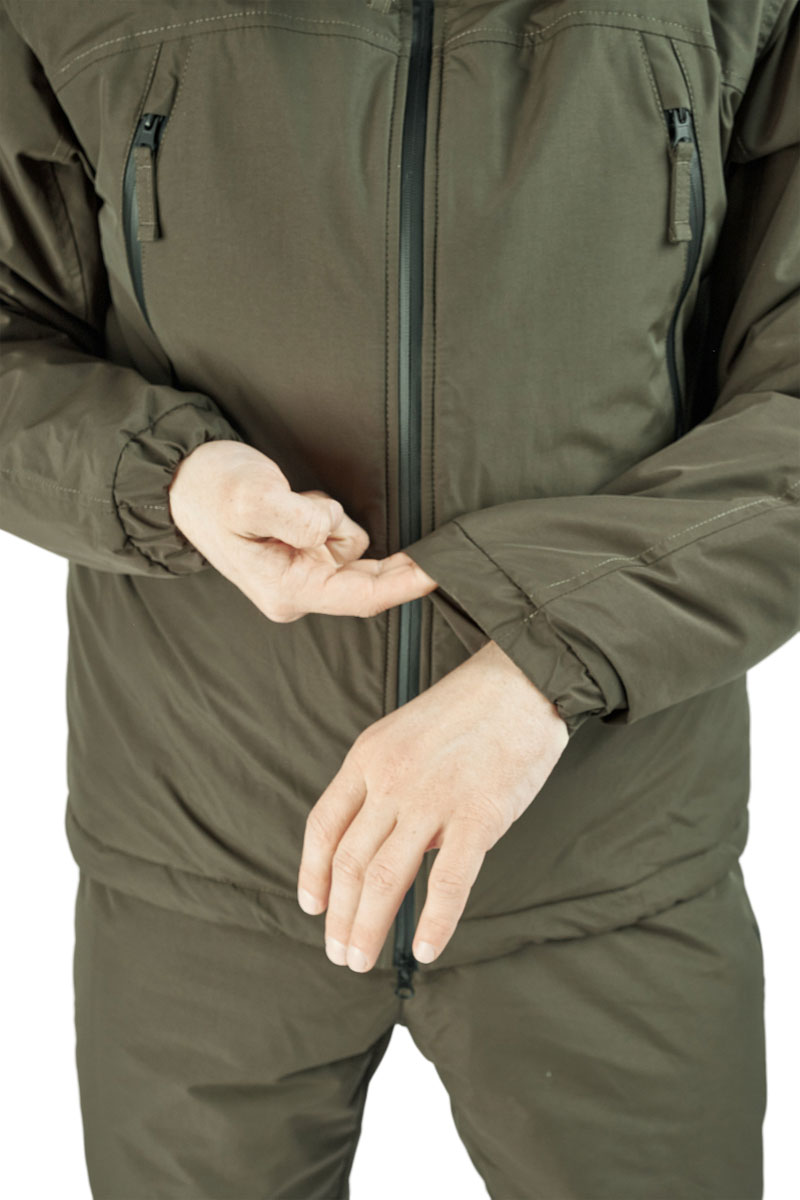 Капюшон с подкладкой регулируется в двух направлениях, а манжеты на липучках и вентиляционные отверстия обеспечивают комфортную посадку и вентиляцию внутри костюма.