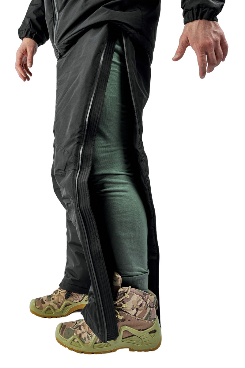 Брюки костюма сконструированы по системе самосброса, благодаря которой очень легко снимаются. Разуваться при этом человеку совсем не обязательно.