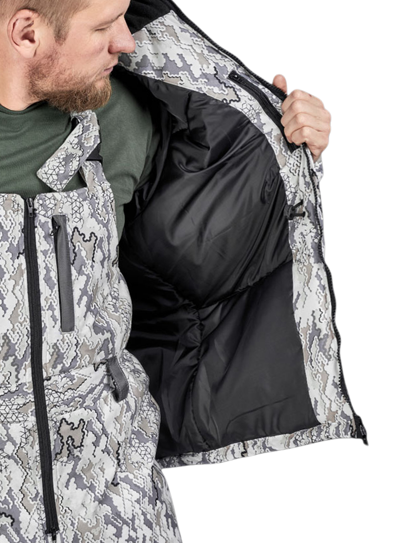 - Температурный режим Hard -35°C: костюм идеально подходит для экстремальных морозов, гарантируя сохранение тепла даже при самых низких температурах;