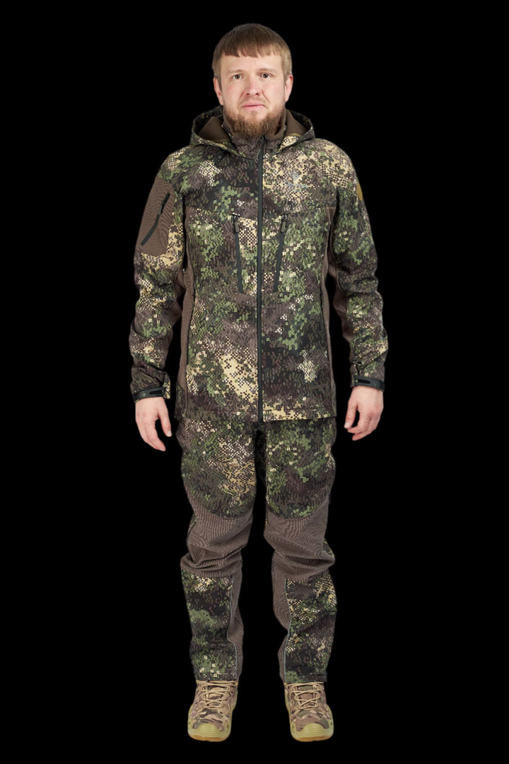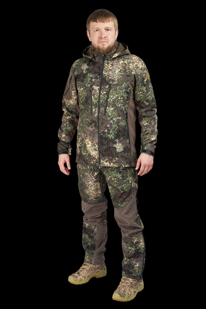 Костюм Зверобой выполнен из ткани SoftshellSoftshell - обеспечивает отвод влаги от тела, при этом оставаясь водо- и ветронепроницаемым.Подробнее с мембраной F-PROTEX CLIMATEF-PROTEX CLIMATE - высококачественная мембрана с показателями водонепроницаемости и пароотведенияПодробнее и водоотталкивающей пропиткой DWRDWR – (Durable Water Repellent) водоотталкивающая пропитка внешней стороны одежды, обуви или снаряжения для придания им гидрофобных свойств.Подробнее она сочетает в себе долговечность носки, сохраняет тепло в пододеждом пространстве, а кевларовыеKevlar - обладает высокой прочностью. Из него изготовляются, в частности, защитные перчатки и защитные вставки в спортивную одежду.Подробнее ставки действительно прочнее стали. И поскольку они находятся в местах повышенного износа, они очень устойчивы к агрессивным условиям среды.