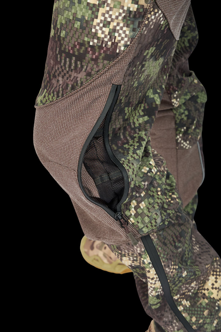 - В брюках есть вентиляционные отверстия на молниях, которые обеспечивают улучшенный воздухообмен;