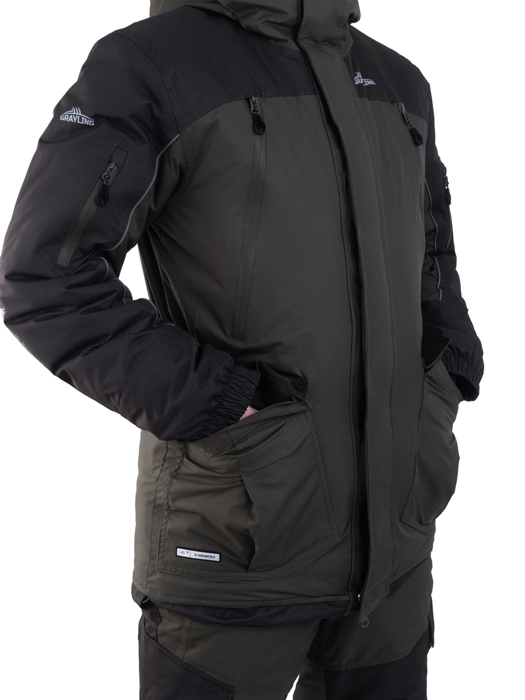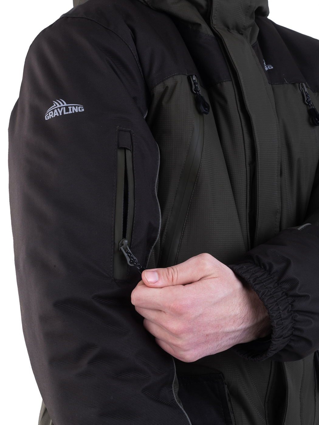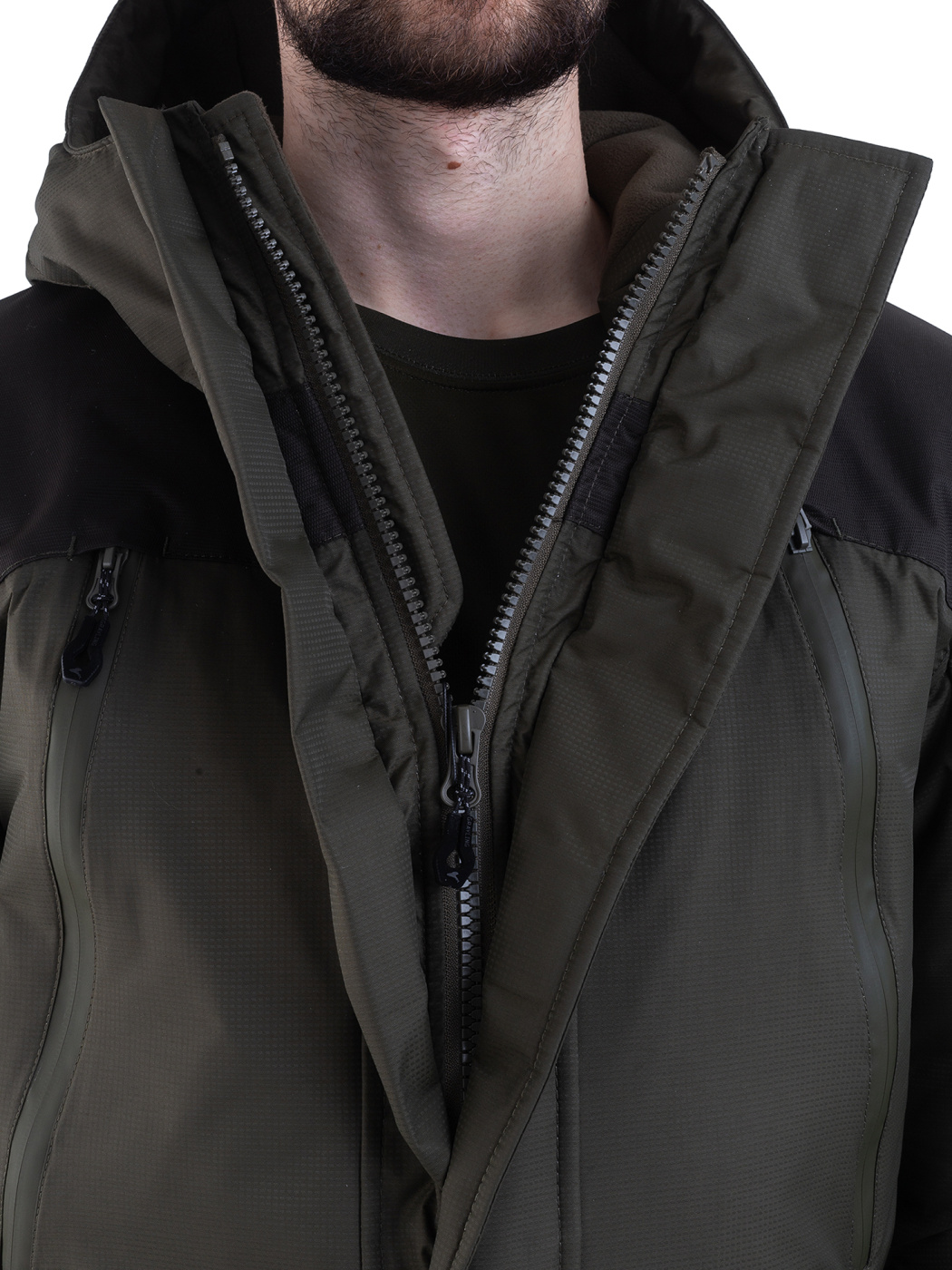 Функциональный костюм для зимней рыбалки. Отличительной особенностью серии костюмов Skat является анатомический крой, который обеспечивает комфортное передвижение даже на труднопроходимых участках местности.