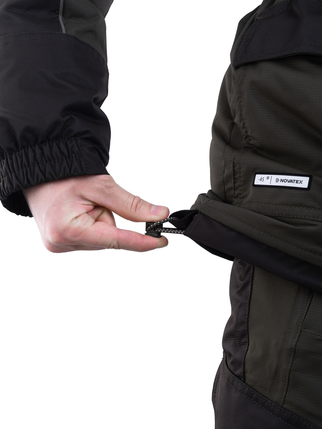Для защиты от ветра и снега костюм оснащен неопреновымиНеопрен - структура материала отличается от структуры обычных тканей, больше напоминая пчелиные соты: мелкие пузырьки воздуха внутри крохотных резиновых ячеек. За счет этого его сложно разорвать, несмотря на мягкость, он легко тянется и совсем не мнется.Подробнее манжетами на рукавах, снегозащитными манжетами на брюках и центральной ветрозащитной планкой на магнитных фиксаторах. Проверенный утеплитель Русский СеверРусский Север - инновационный, экологически безопасный, гипоаллергенный утеплитель, разработанный специально для суровых российских климатических условий.Подробнее в комбинации с фольгированным термоподкладом обеспечит защиту от самых сильных морозов.
