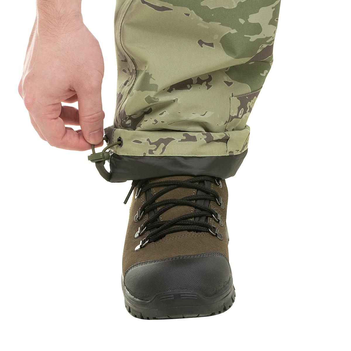 - Эластичные ленты на поясе брюк и фиксаторы в районе щиколоток препятствуют продуванию и создают комфортную посадку.