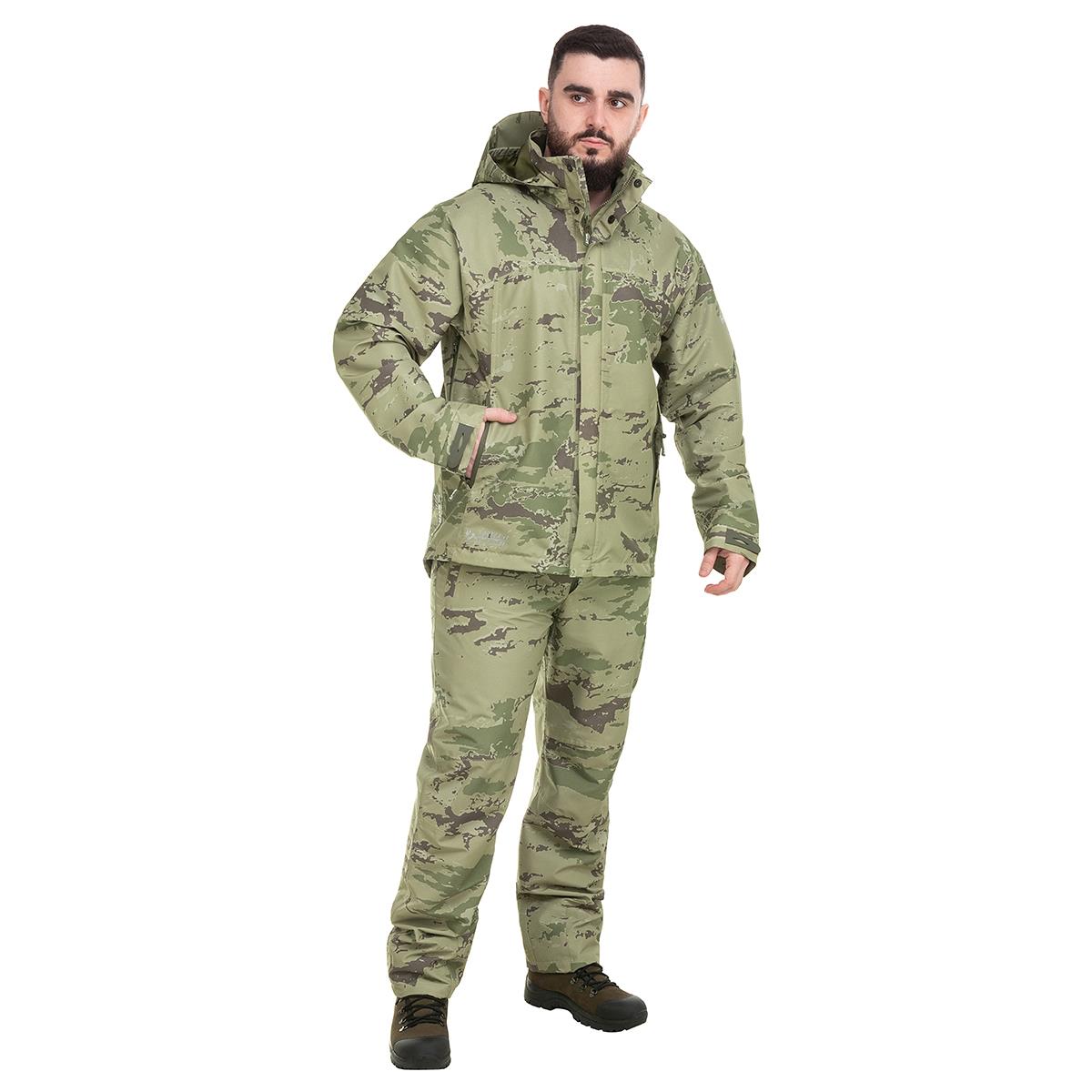 | Комплект костюма: Здесь мы указываем состав костюма. Стандартный комплект - куртка и брюки/полукомбинезон. В расширенный комплект, в зависимости от производителя, могут входить: жилет, термобелье, патронташ, перчатки, шапка и тд. Подробнее | куртка, брюки |