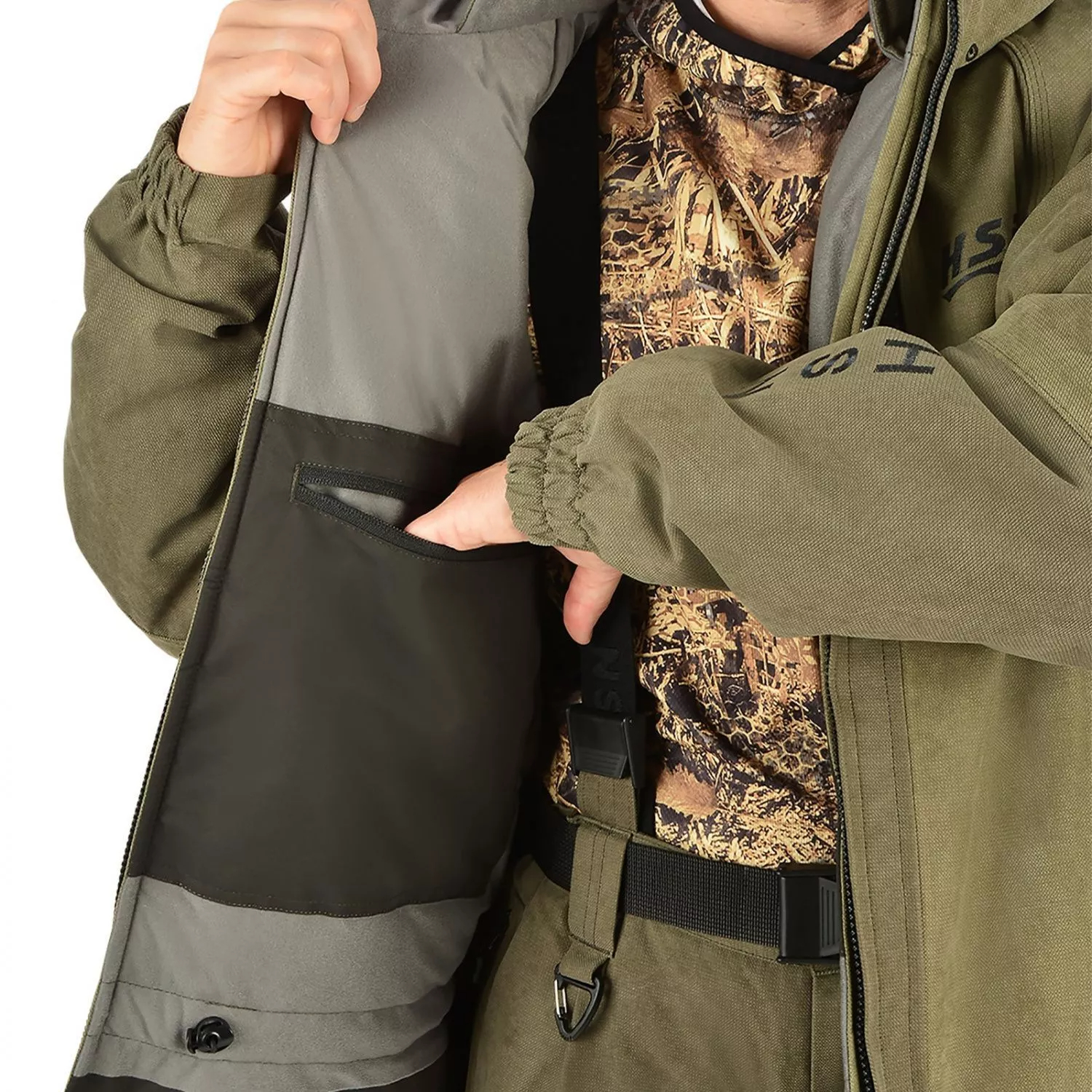 Костюм ХСН Stalker III выполнен из современного прочного материала IslandiyaИсландия Исландия (Islandiya) – это бархатистый, приятный на ощупь снаружи современный материал с водоотталкивающим, паропроницаемым мембранным слоем с изнаночной стороны. Такой материал обеспечивает защиту от ветра, мороза, выход излишней и влаги и пара на поверхность.