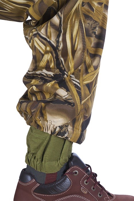 Брюки также оснащены различными карманами, в том числе для фонарика или ножен. Внизу штанины имеют манжеты, которые заправляются внутрь обуви и защищают икры ног от натирания, мусора и насекомых.
