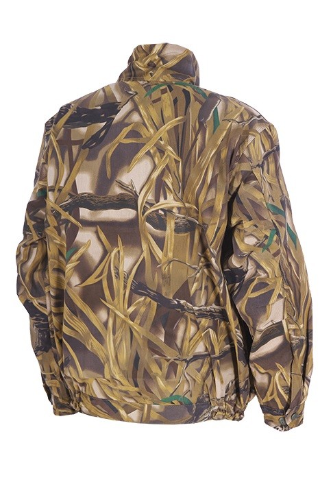 При изготовлении охотничьей одежды мы используем плащевую ткань (твил), которая не шуршит, т.к. она изготовлена из специальной нити с высоким содержанием хлопка. Состав ткани: 35% х/б, 65% п/э, плотность 240 г/кв.м, производство Корея. Для защиты от влаги материал обработан водоотталкивающей пропиткой. Лицевая поверхность ткани имеет брашинг-персиковый эффект. Инновационные камуфлированные рисунки идеально маскируют охотника в любой местности.