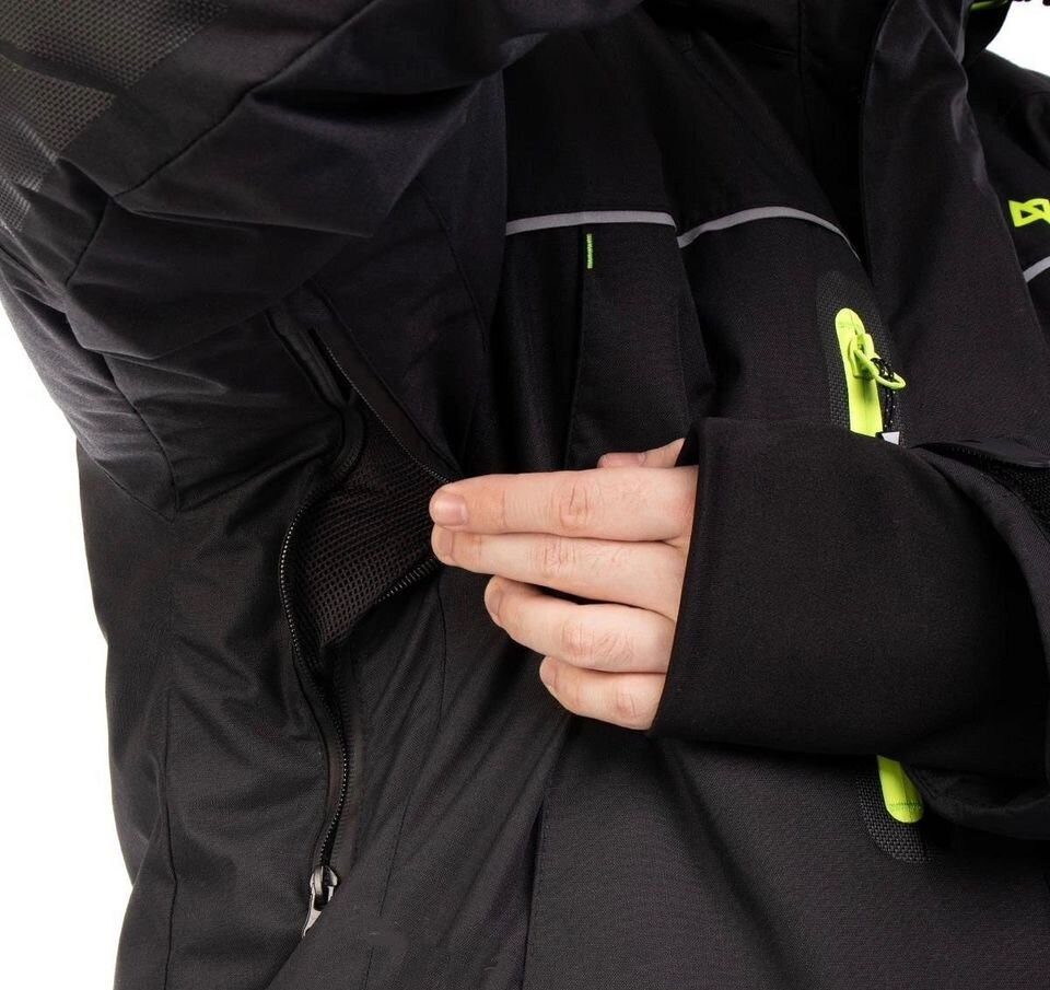 Мембрана FortexFortex – современный высокотехнологичный материал, разработанный для верхней спортивной и outdoor одежды.Подробнее с высокими показателями (15000/15000) и усиленной пропиткой DWRDWR – (Durable Water Repellent) водоотталкивающая пропитка внешней стороны одежды, обуви или снаряжения для придания им гидрофобных свойств.Подробнее, проклеенные швы и влагозащитные молнии гарантируют надёжную защиту от мокрого снега, дождя и ветра во время рыбалки, езды на снегоходе.