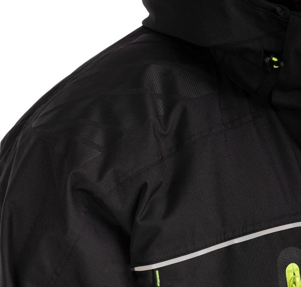 - Теплый съемный капюшон с удобными регулировками по объему головы и глубине. Козырек на капюшоне не ограничивает обзор и надежно защитит от попадания лишней влаги на лицо при непогоде;