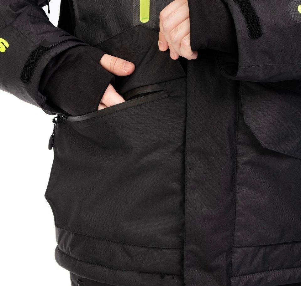 - Максимальную функциональность костюму придает продуманная система размещения карманов. Куртка оснащена 7 наружными и 3 внутренними карманами, что позволит вместить все необходимые мелочи, телефон и документы. Утепленные микрофлисом нагрудные карманы позволяют быстро отогреть руки в мороз. Два вместительных нижних кармана с клапаном на магнитной застежке дополнительно оснащены молнией от попадания снега. Карман с молнией на левом рукаве для хранения мелочей или ски-пасса. Все наружные карманы закрываются на влагозащитные молнии;