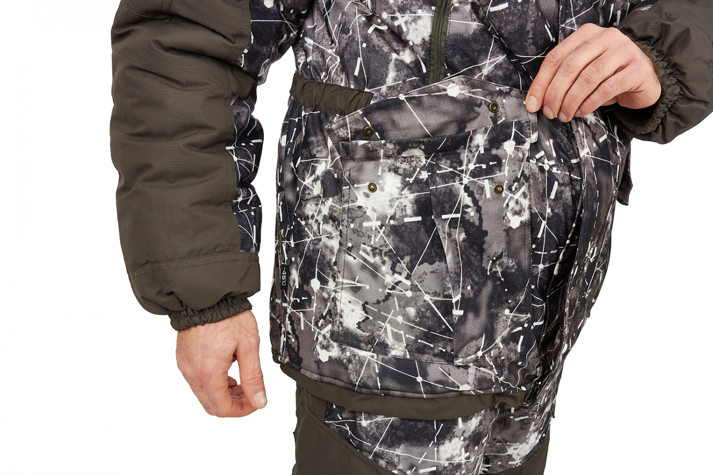 " в местах повышенного износа увеличивают срок эксплуатации костюма. Фирменной чертой костюмов Горка является большое количество функциональных карманов, как прорезных, так и накладных. Лямки по системе кобура надежно фиксируются и не спадывают с плеч.