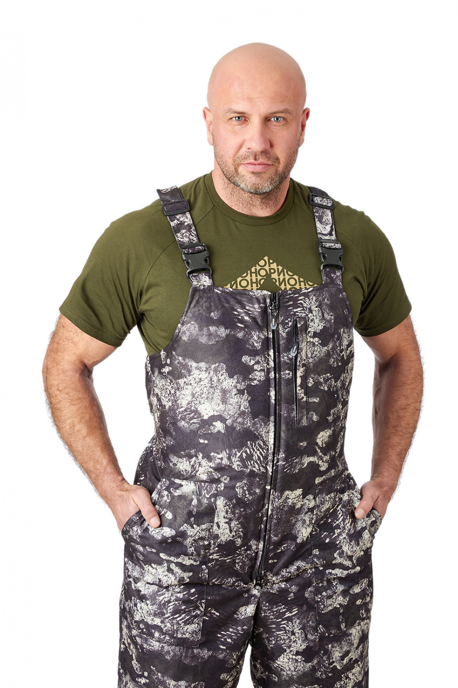 Костюм Вепрь предназначен для работы и активного отдыха при низких температурах. Костюм выпускается для категории покупателей, предпочитающих укороченную куртку на резинке. Высокий комбинезон защищает поясницу от продувания, а также несет функции дополнительного утепления для спины и груди. Бесшумная ткань алова в комбинации с мембранной пленкой Mercury-Tex Active с показателями 10000/8000 обеспечивает защиту от ветра и снега.