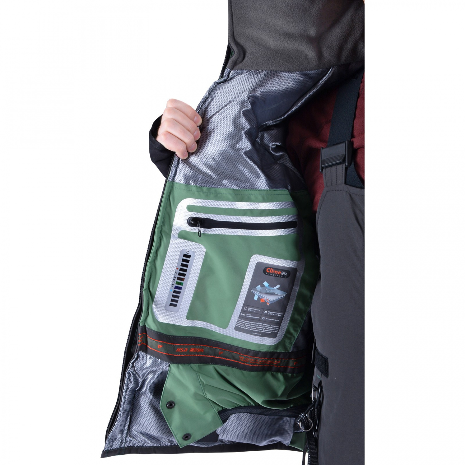 внутри куртки размещен влагозащитный карман;