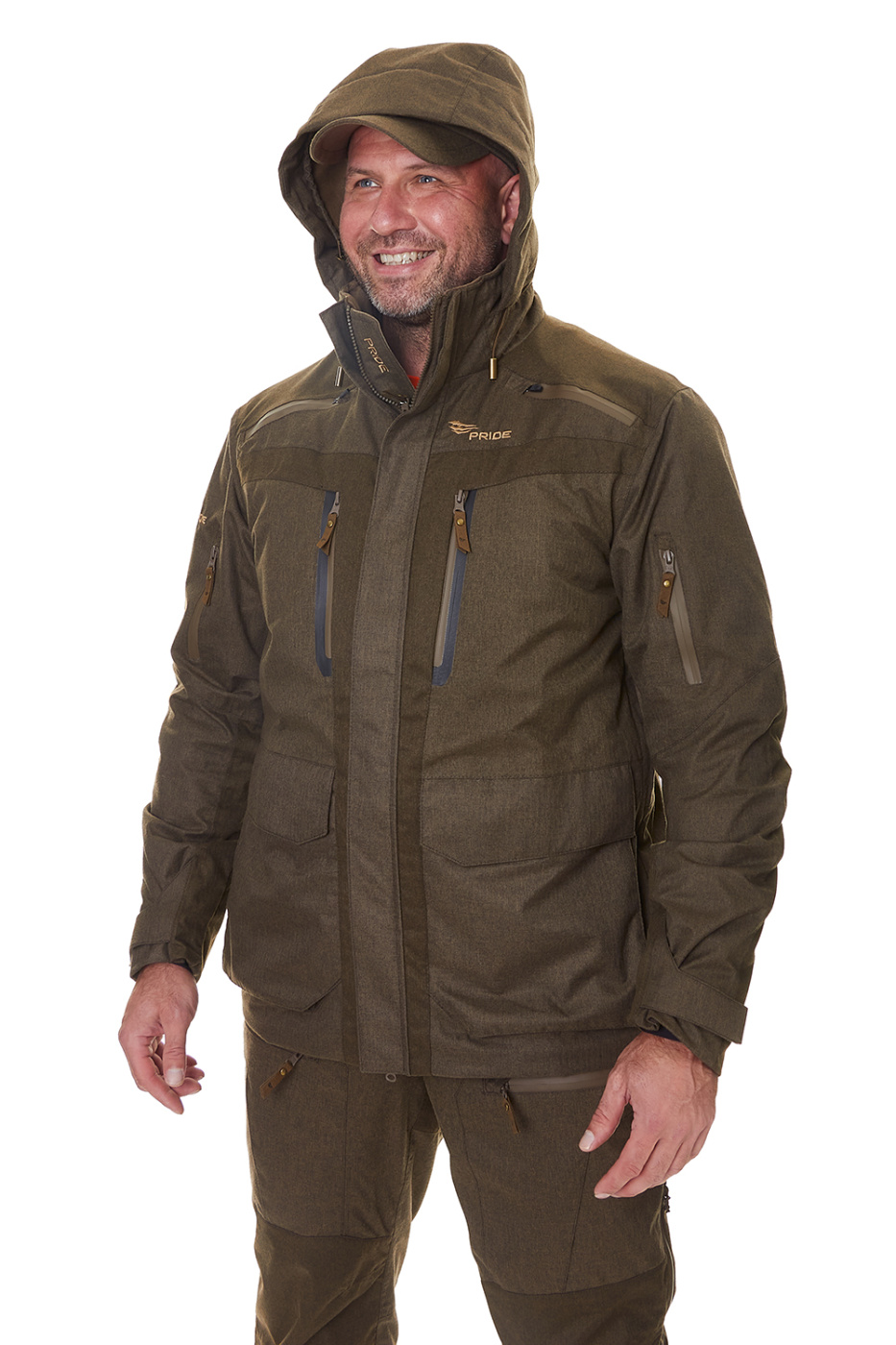 Применение современных материалов позволило снизить вес костюма, что позволит охотнику меньше уставать при длительных переходах. На куртке предусмотрены карманы под рацию (для левшей и правшей). На куртке присутствует вентиляция в боковом шве. На брюках используется высокая молния с двумя бегунками, которая также выполняет роль вентиляции.