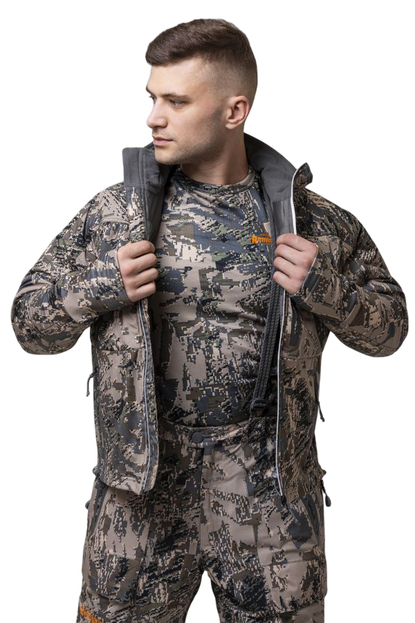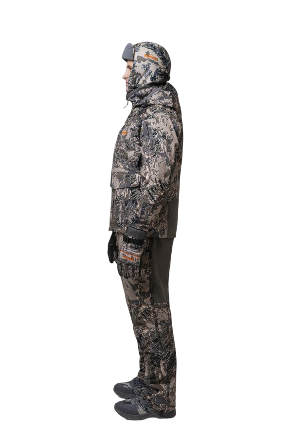Костюм был разработан совместно с охотниками и рыболовами для учета всех потребностей в зимних условиях. Цвет Figure подходит для маскировки в природной среде.