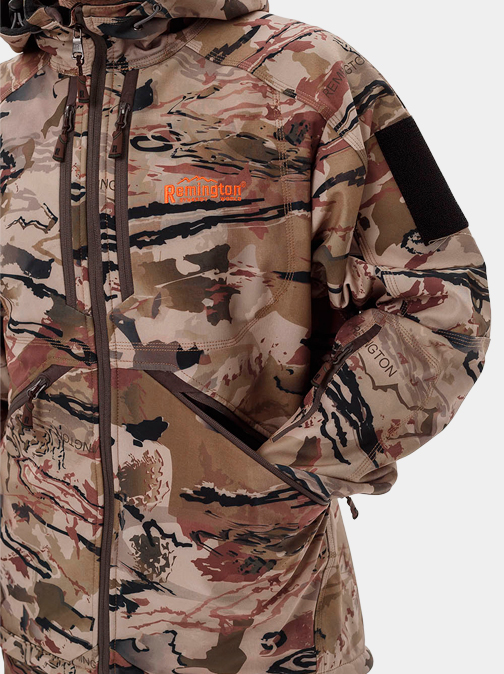 Костюм Remington Himalayan выполнен из современной мембраны Climatic Pro с характеристиками Паропроницаемость 12 000 г/м²/24 ч, Водонепроницамость 10 000 мм. Плотный верхний слой ткани, непроницаемый для ветра, сочетается с более «дышащей» подкладкой из микрофлиса, что позволяет добиться улучшенной терморегуляции. Для дополнительной вентиляции в костюме предусмотрены молнии в области подмышек. Для комфортного использования в костюме предусмотрены множественные регулировки объема, позволяющие обеспечить наилучшую посадку и защитить от попадания холодного воздуха. Высокий воротник стойка с втачным капюшоном дополнительно защитит от непогоды и позволит сохранить тепло. Множество карманов различного объема позволят правильно распределить и сохранить все личные вещи.