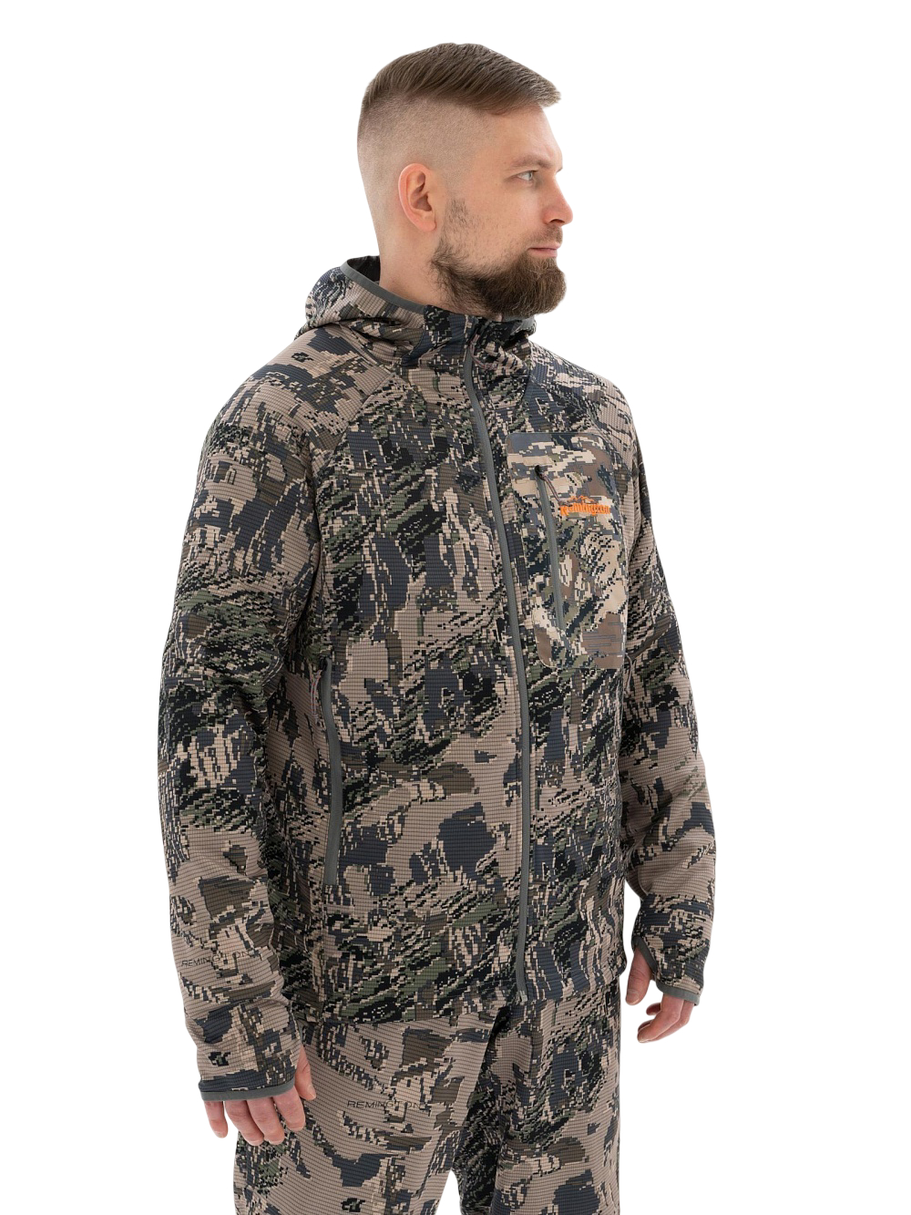Костюм Remington Oreo Figure изготовлен из бесшумной ткани. Прекрасно подойдет для охоты или отдыха на природе. Наличие капюшона на куртке позволит обеспечить защиту от ветра и дождя. Внутренняя ветрозащитная планка на молнии станет дополнительной защитой от ветра. Плотное прилегание рукава обеспечивается резинкой, на рукаве имеется отверстие под палец.