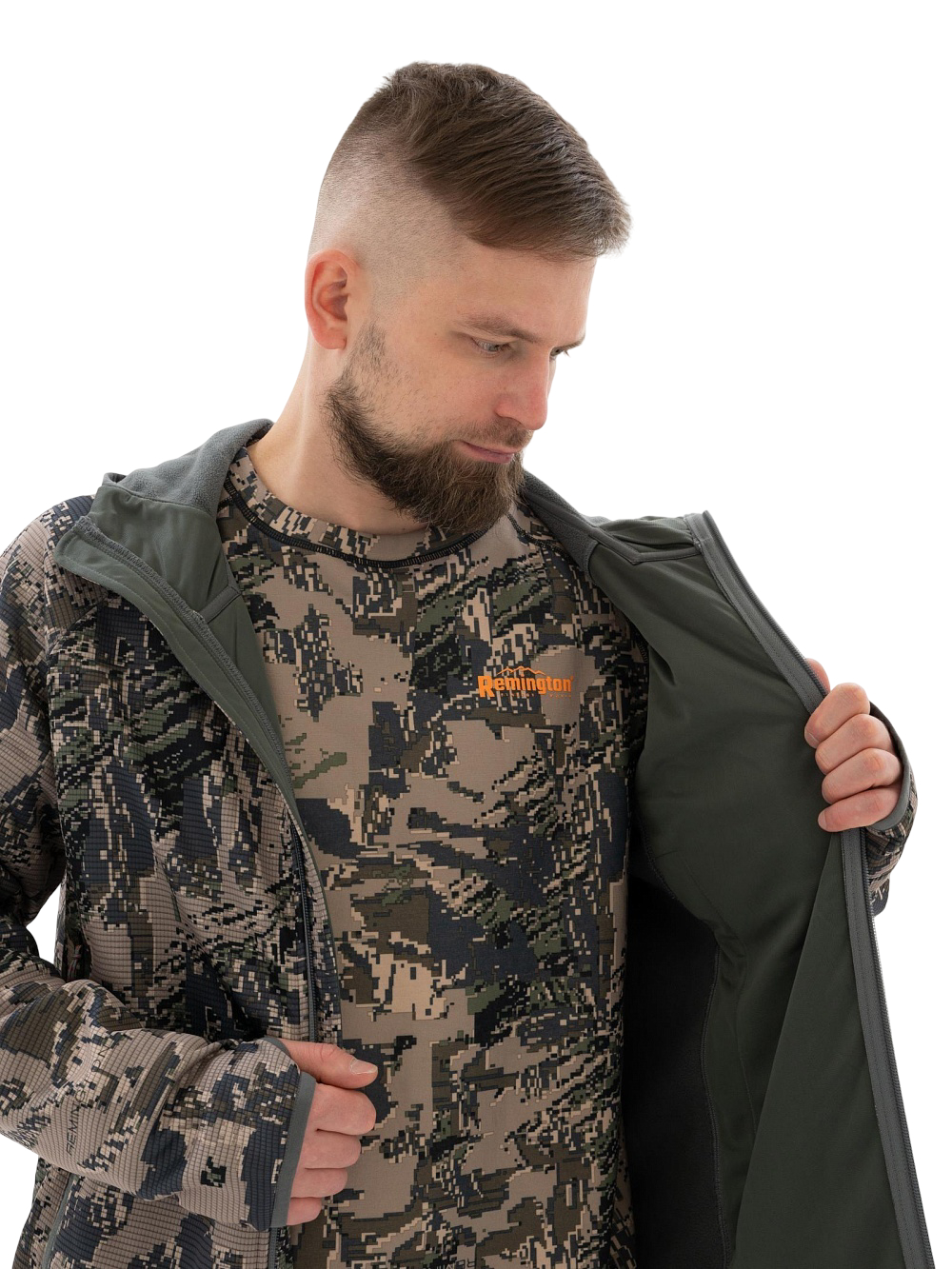 По низу костюма Remington Oreo Figure идет регулировка по объему кулисой. Мягкая флисоваяFleece - система утепления легким и тонким слоем из дышащей ткани способна поддерживать комфортную температуру тела.Подробнее подкладка на спине и внутри капюшона обеспечит сохранение тепла. Глубокие карманы в боковых швах позволят комфортно разместить руки, в брюках костюма также имеются 2 кармана в боковых швах. Благодаря наличию в поясе брюк резинки, обеспечивается хорошая посадка на различных типах фигуры, для дополнительной регулировки по объему в пояс вставлен шнурок. Манжета по низу брюк костюма Remington Oreo Figure обеспечит защиту от пыли и холодного воздуха.