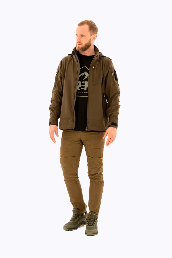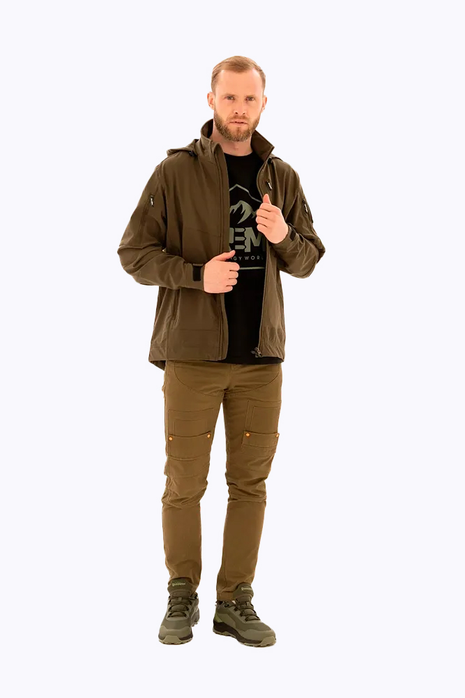 Лаконичный дизайн и оливковый цвет делают модель уместной как в повседневной городской среде, так и в путешествиях. Куртка рассчитана на температуру до +5 °C.