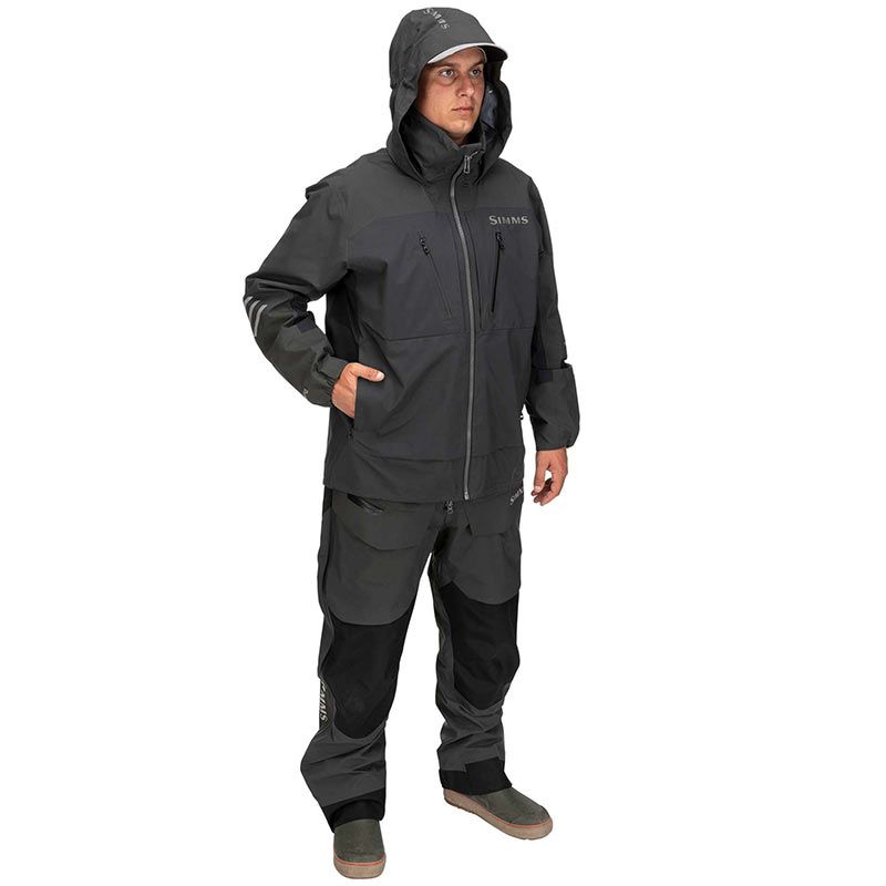 Simms ProDry Jacket – рыболовная куртка из прочной 3-слойной мембранной ткани, которая не позволит вам намокнуть даже во время шторма. Капюшон имеет 3-точечную регулировку и способен удерживаться даже при движениях на больших скоростях. Центральная молния водонепроницаема, как и нагрудные карманы на молнии. По бокам есть регулируемые карманы для рук с молнией, а также карман внутри куртки. У подола предусмотрено d-образное кольцо.
