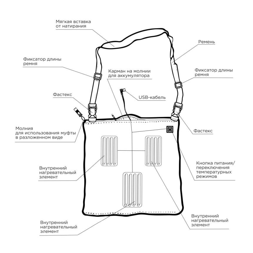 Муфта комплектуется тремя нагревательными элементами и регулятором температуры с тремя режимами, которые подключаются через кабель USB к Power BankPower Bank — это мобильное зарядное устройство, внешний аккумулятор, который используют для зарядки техники.Подробнее (*опция, в комплект не входит). У вас будет полный контроль над температурой обогрева рук тремя режимами нагвательных элементов: 45°C, 55°C и 65°C.